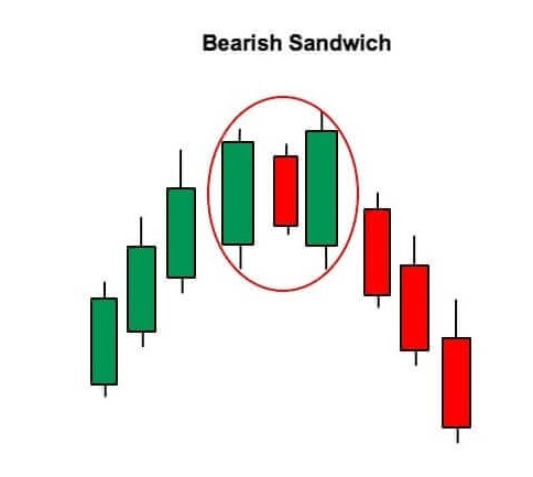 The Bearish Stick Sandwich is a two-candle bearish reversal pattern that appears near the end of an uptrend. It signals that buyers are losing strength and sellers are beginning to take control. This pattern forms when a bullish candle appears between two bearish candles that share the same closing price, creating a “sandwich” effect. The repeated closing level acts as strong resistance, indicating that the price is struggling to move higher and may soon reverse downward.