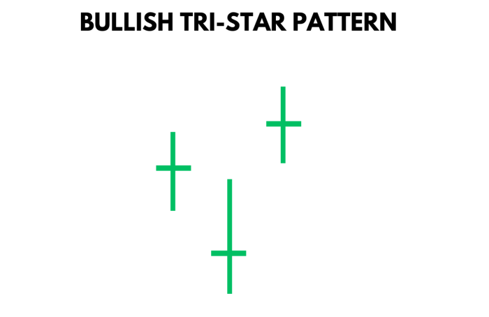 The Bullish Tri-Star is an extremely rare but highly reliable candlestick reversal pattern. It appears at the bottom of a downtrend and signals a potential shift from bearish sentiment to bullish momentum. Formed by three consecutive Doji candles, the pattern reflects deep market indecision before a possible trend reversal.