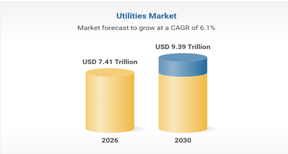 The utilities market size is expected to see strong growth in the next few years. It will grow to $9.39 trillion in 2030 at a compound annual growth rate (CAGR) of 6.1%