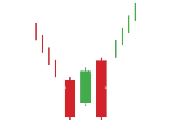 Often closes above both the previous candles.